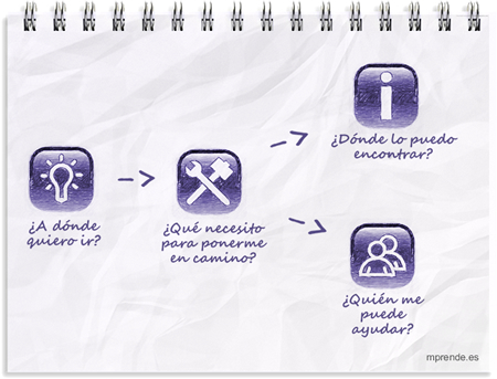 Debe conocer primero a dónde quiere dirigirse, cuáles son sus objetivos y metas. Analizará los requisitos, herramientas y recursos de todo tipo que necesitará para ponerse en marcha. Para obtenerlos, se cuestionará dónde los puede encontrar y quién le puede ayudar y en quién se puede apoyar.